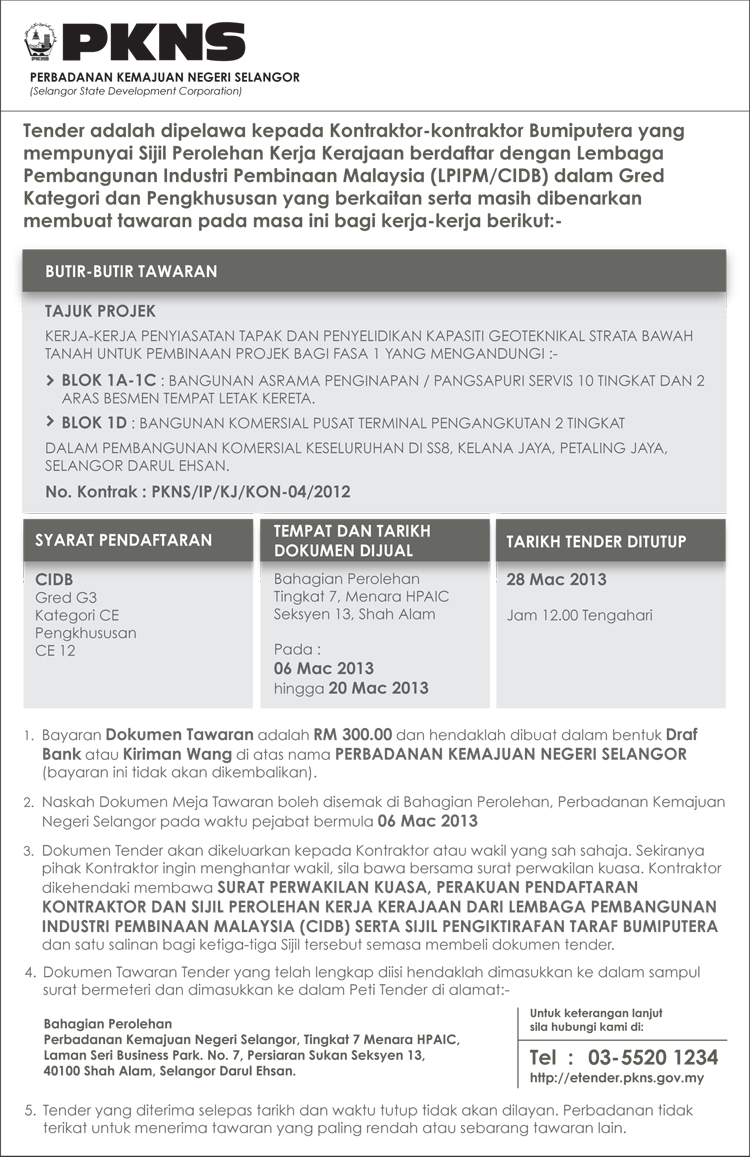 Perbadanan Kemajuan Negeri Selangor Pkns Notis Sebutharga Dan Tender