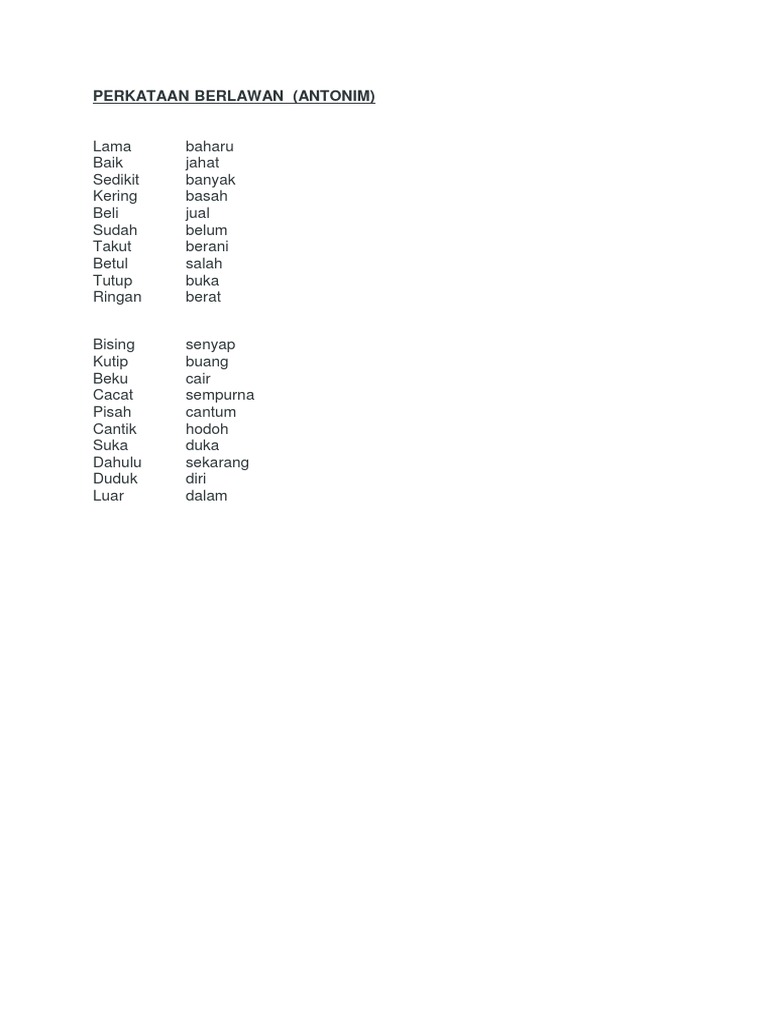 Bahasa Melayu Perkataan Berlawan