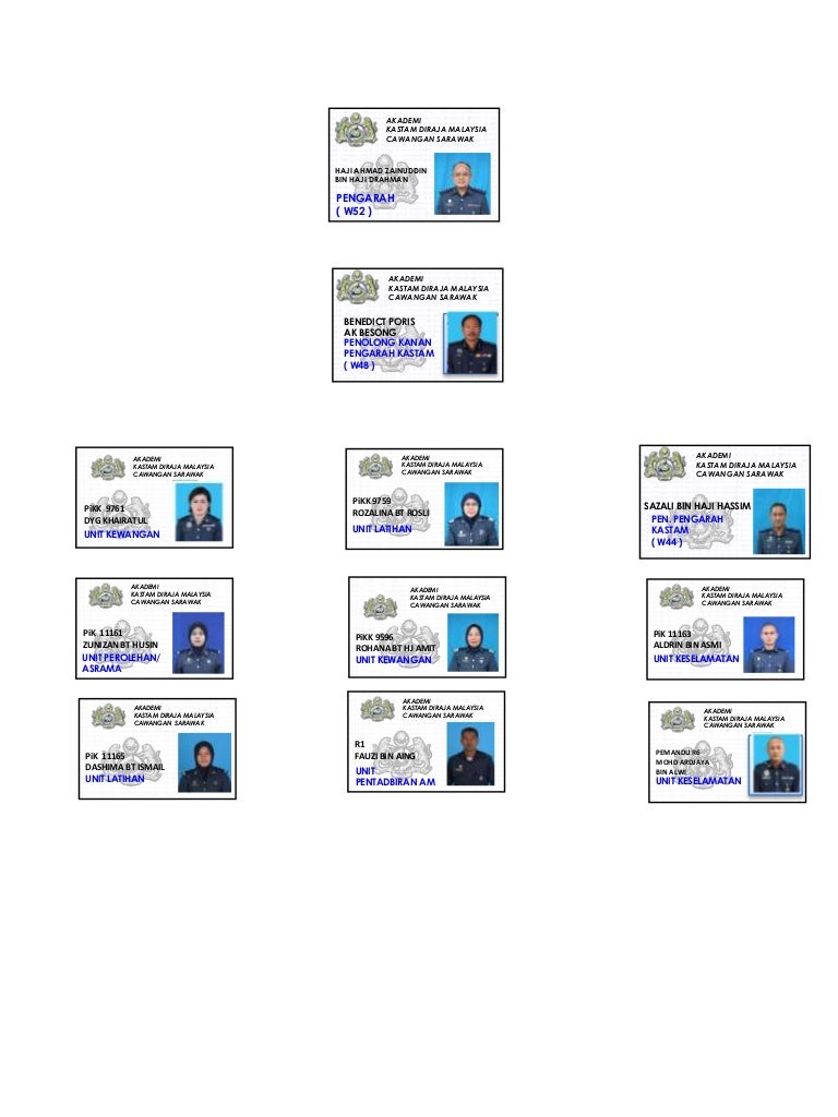 Timbalan Pengarah Perubatan 1. Penolong Pengarah Kastam WK44. Pegawai Kanan Kastam di BahagianPenguatkuasaan Kastam Kuala Lumpur Hizam AbdGhani 57.