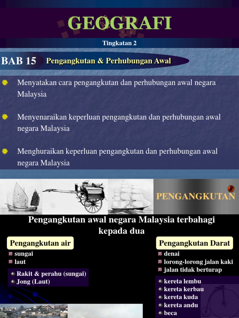 GEOGRAFI TINGKATAN 2 BAB 5. Pengangkutan terbahagi kepada beberapa jenis iaitu pengangkutan melalui jalan darat pengangkutan melalui jalan air dan pengangkutan melalui udara. Ruang komen di bawah atau Youtube.