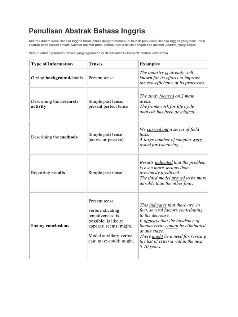 Penulisan Abstrak Bahasa Inggris Docx Grammatical Tense Perfect Grammar