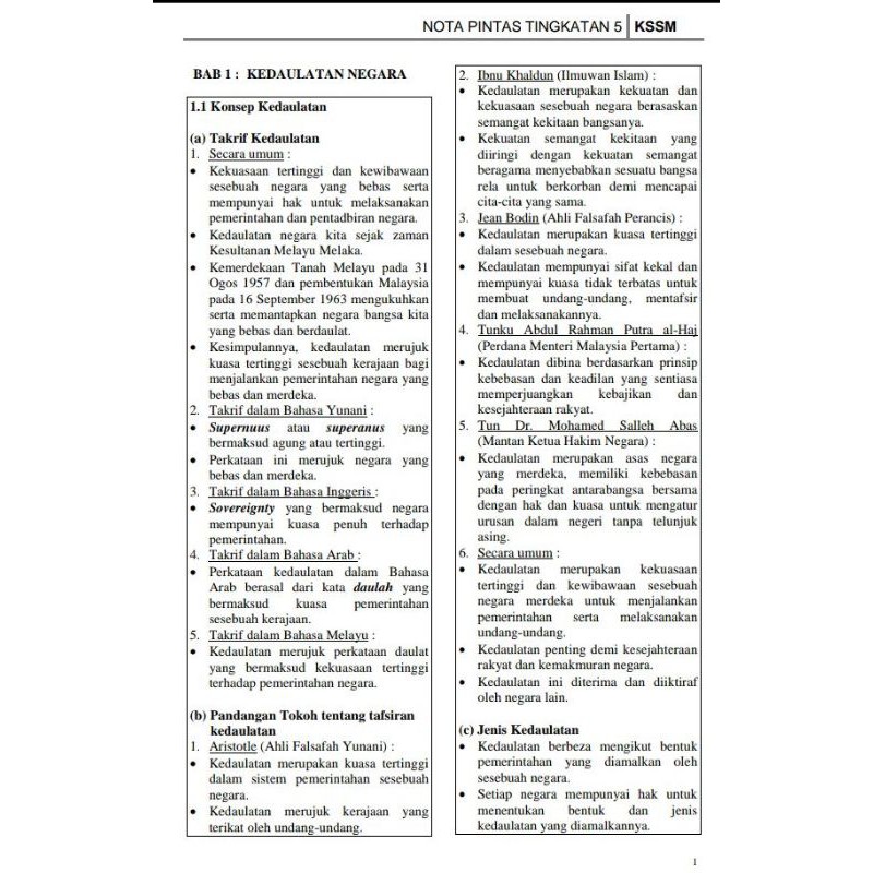 Nota Ringkas Sejarah Tingkatan 4 Bab 1 Kssm 2020