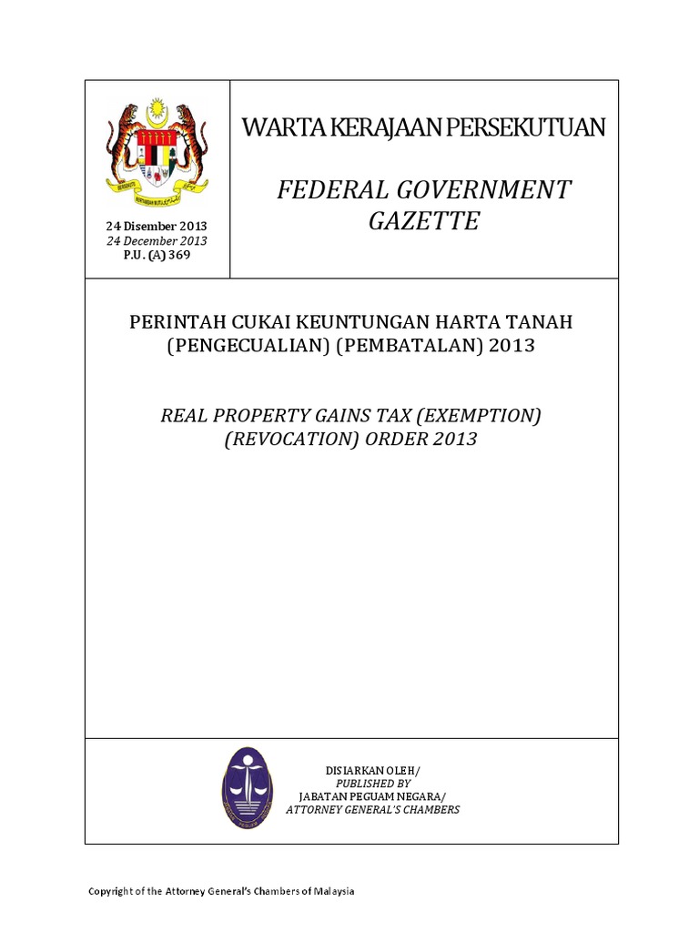 Pua 20131224 P U A 369 Perintah Cukai Keuntungan Harta Tanah Pengeculian Pembatalan 2013 Pdf