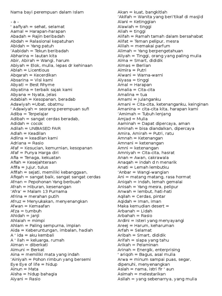 Nama Nama Anak Dalam Islam Pdf