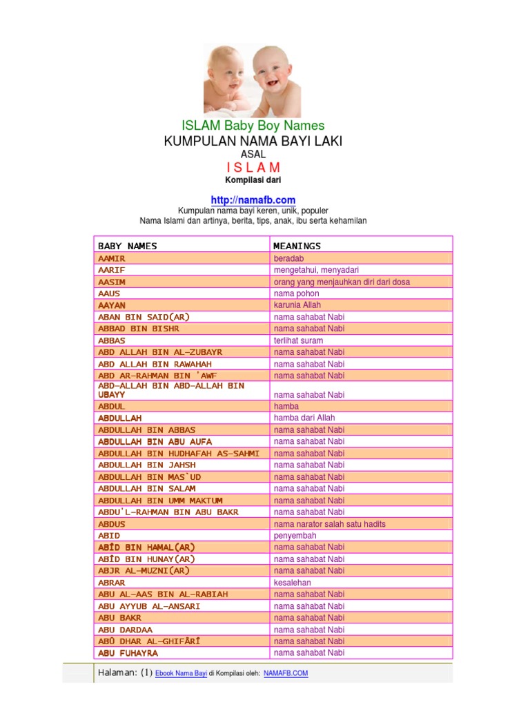 Pdf Kumpulan Nama Nama Bayi Nama Nama Bayi Laki Laki Imdadur Rohman Academia Edu