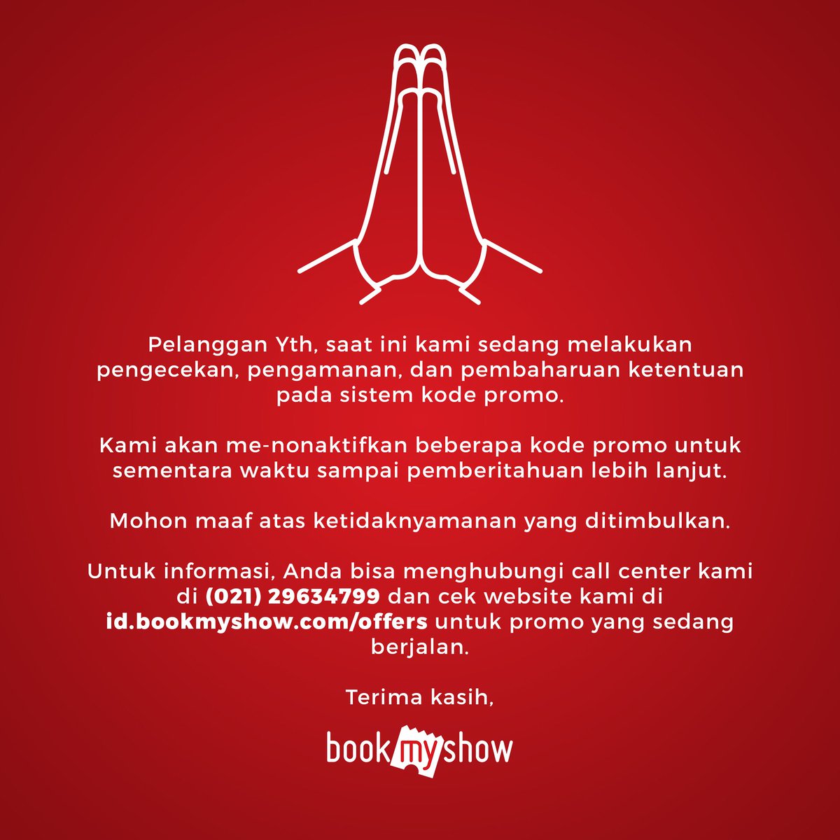 Kuharap kamu mau memaafkanku Mohon maafkan aku. Kami telah meninjau proses kami. Update 30 Oktober 2020 1310 Pelanggan Yth Kami informasikan saat ini layanan telpon sudah kembali normal Sebelumnya kami mohon maaf atas ketidaknyamanannya.